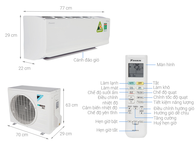 | Công suất | Lạnh 17.100 BTU, sưởi 19.800 BTU |