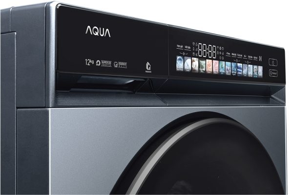 Máy giặt Aqua Inverter AW12-B4377U1L(GN) sở hữu thiết kế cửa trước hiện đại với tông màu đen sang trọng, mang đến vẻ đẹp tinh tế cho không gian sống gia đình.