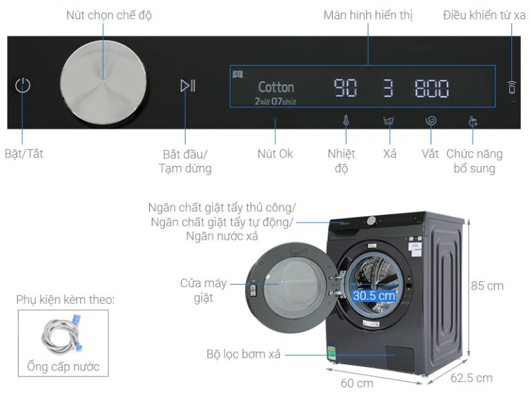 • AI Wash phân tích độ bẩn, tối ưu quy trình giặt