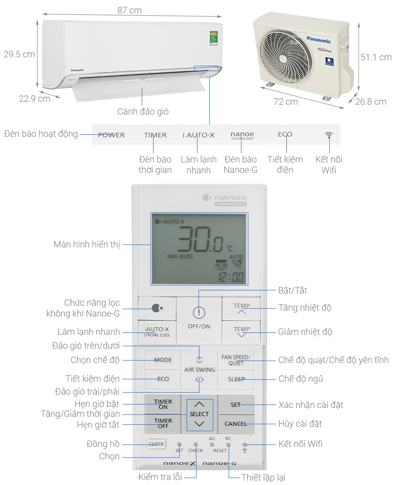 – Công nghệ Nanoe-G lọc sạch bụi bẩn, bụi mịn PM 2.5, cho không gian phòng trong lành hơn.