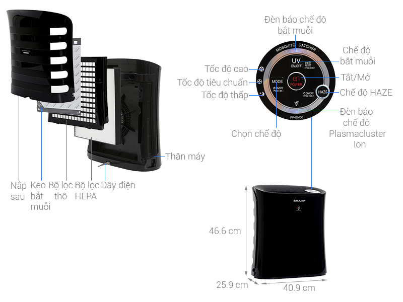 Tiện ích: Plasmacluster Ion mật độ cao tiêu diệt nấm mốc trong không khí, khử mùi thuốc lá, phấn hoa, Bắt muỗi bằng đèn UV