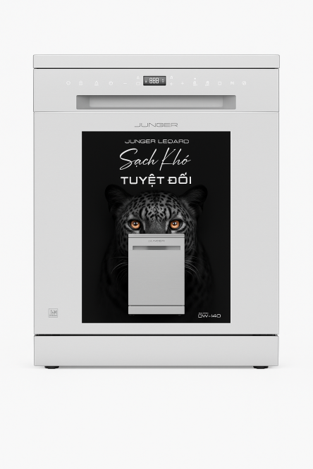 Máy rửa bát Junger Leopard DWJ-140 sở hữu thiết kế sang trọng với gam màu trắng trang nhã, hiện đại chuẩn Đức, hiệu quả ‘Sạch khô tuyệt đối”.