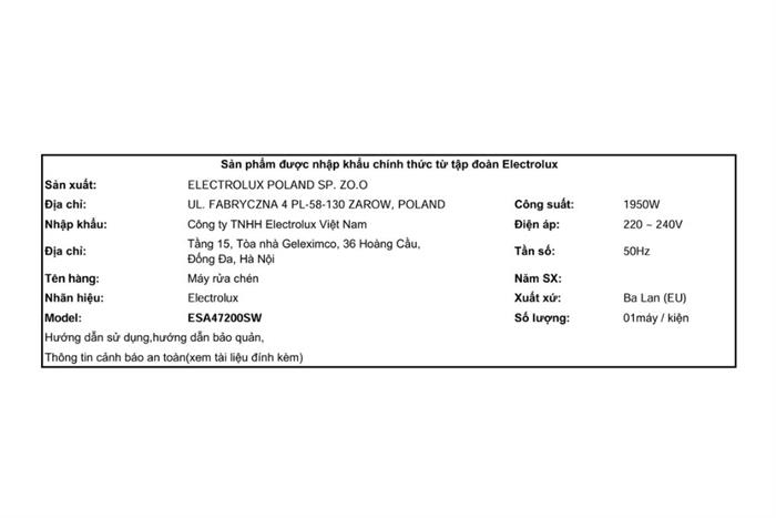 Máy rửa bát Electrolux ESA47200SW là sự kết hợp hoàn hảo giữa thiết kế sang trọng, tính năng thông minh và hiệu suất hoạt động mạnh mẽ. Với khả năng rửa được 13 bộ chén đĩa, đa dạng chương trình, sấy khô hiệu quả và diệt khuẩn vượt trội, đây chắc chắn là trợ thủ đắc lực giúp bạn giải phóng thời gian và tận hưởng cuộc sống tiện nghi hơn mỗi ngày.