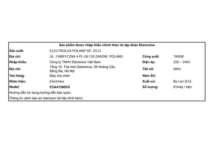 Máy rửa bát độc lập Electrolux ESA47200SX là thiết bị lý tưởng cho không gian bếp hiện đại, đáp ứng trọn vẹn nhu cầu rửa chén bát của gia đình nhờ dung tích lớn, hiệu suất làm sạch vượt trội và khả năng sấy khô tự nhiên vượt bậc. Không chỉ giúp tiết kiệm thời gian và công sức, máy còn mang lại sự yên tâm tuyệt đối nhờ tính năng diệt khuẩn, vận hành êm ái, tiết kiệm năng lượng và độ bền cao. Đây chính là trợ thủ đắc lực cho mọi căn bếp bận rộn ngày nay.