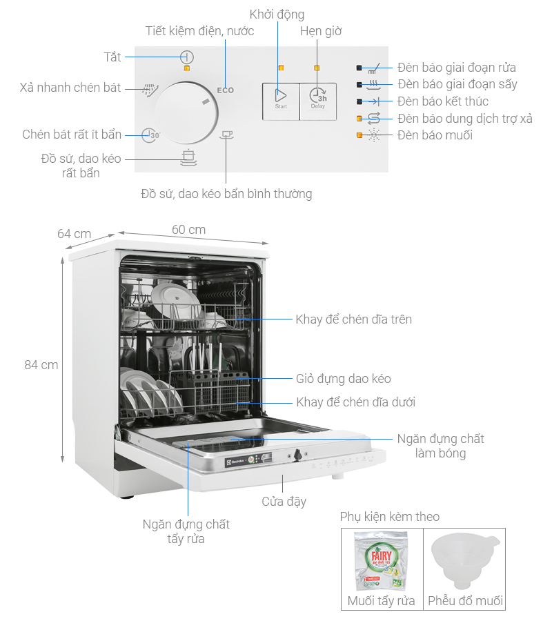 Máy rửa bát Electrolux ESF5206LOW 1950W có thiết kế góc cạnh tinh tế, với màu trắng sang trọng, chắc chắn sẽ làm nổi bật không gian nhà bếp của bạn. Ngoài ra sản phẩm được thiết kế dạng thùng gọn gàng nên linh hoạt cho việc bố trí ở mọi không gian bếp nhà bạn như lắp vào hộc tủ dưới kệ bếp (không lắp âm vào tường), để trên mặt bếp tiện lợi.