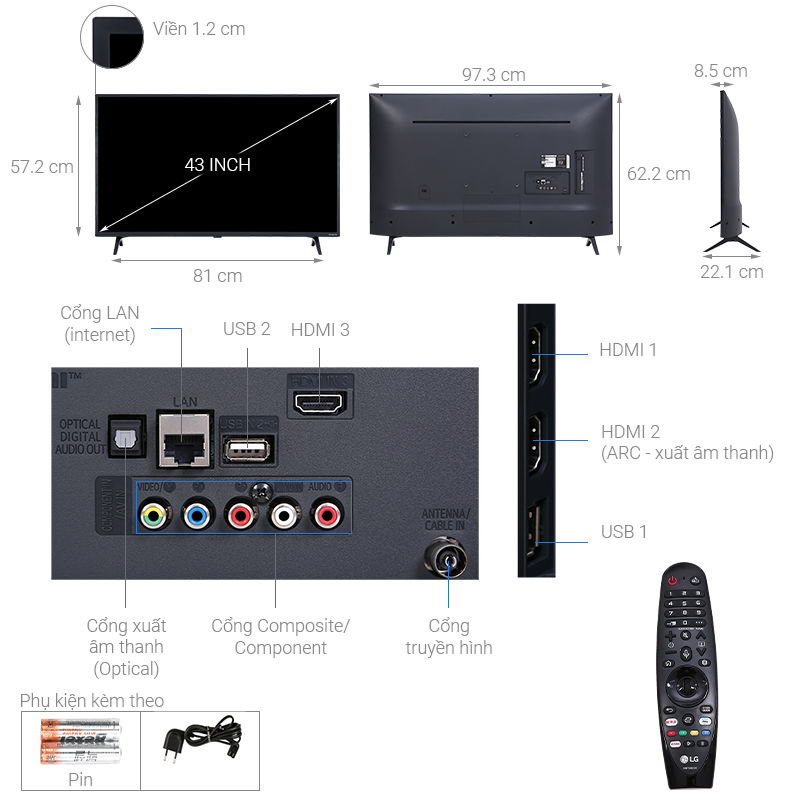 Smart Tivi NanoCell LG 4K 43 inch 43NANO79TND làm đẹp không gian phòng ăn, phòng ngủ, hay phòng họp… vừa và nhỏ với màn hình 43 inch vừa đủ cho những khung hình ấn tượng.