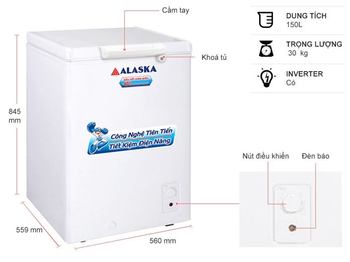 Tủ Đông Alaska BD-150 là sản phẩm tủ đông có kích thước rất nhỏ gọn, phù hợp với gia đình sử dụng.