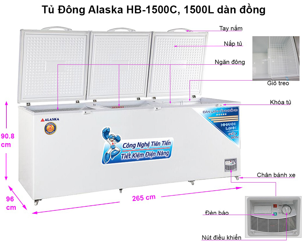• Tủ đông Alaska HB-1500C tích hợp công nghệ làm lạnh nhanh với dàn ống bằng ống đồng có độ bền cao mà vẫn tiết kiệm điện năng.