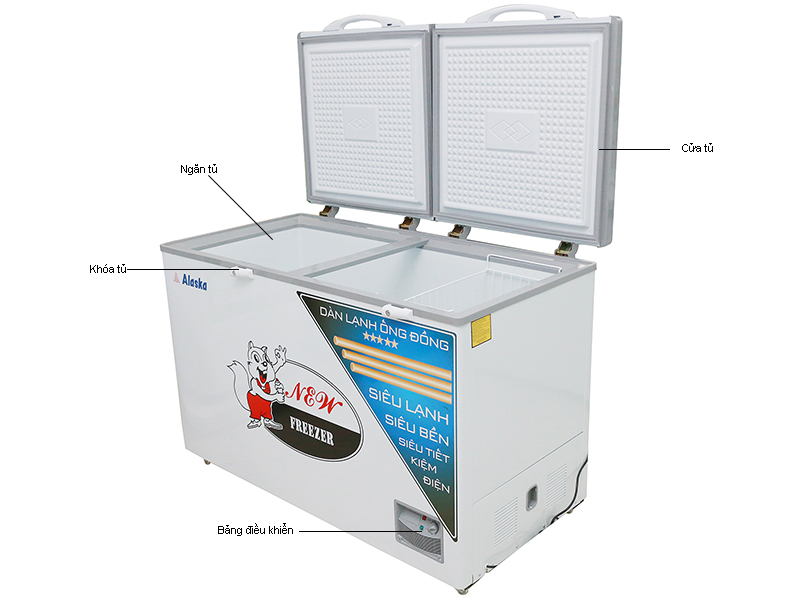 Tủ đông Alaska HB-550C với dung tích lớn lên đến 550 lít rất phù hợp để bảo quản thực phẩm trong các siêu thị, nhà hàng, quán ăn… có nhu cầu lưu trữ một lượng lớn thực phẩm. Tủ thiết kếchỉ có 1 ngăn kết hợp 2 chức năng bảo quản đông và mát nhưng có tới 2 cánh cửa lật vali giúp thao tác khi sử dụng nhẹ nhàng, dễ dàng đồng thời giảm hao tổn luồng khí lạnh hơn hẳn so với thiết kế 1 cánh tủ. Đặc biệt bên trong tủ còn có 2 cánh cửa lùa không chỉ giúp tiết kiệm điện năng, giảm hao tổn điện trong mỗi lần mở tủ mà còn giúp tủ luôn kín khít và thao tác quan sát thực phẩm bên trong tiện lợi hơn.
