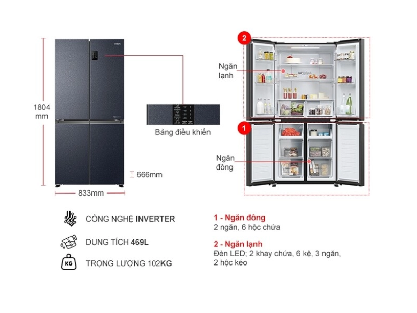 – Dung tích 469 lít thoải mái đáp ứng nhu cầu sử dụng của các gia đình có từ 4 – 5 thành viên.