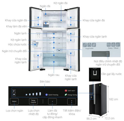 – Ngăn trữ thịt cá và rau quả tươi: Cho phép tùy chỉnh 2 mức nhiệt trữ rau quả hoặc trữ sữa/thịt.