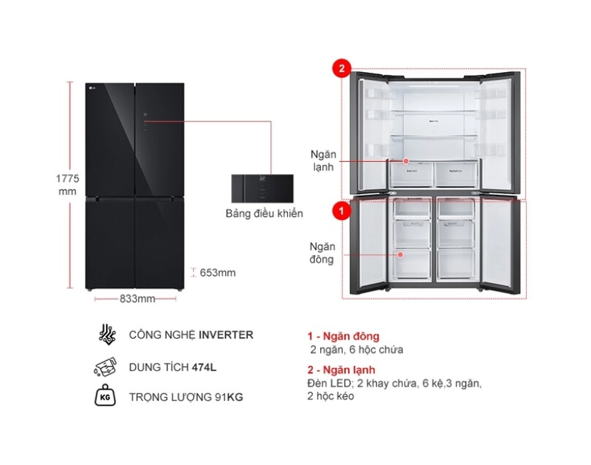 🔺 Dung tích sử dụng: 474 lít – 4 – 5 người