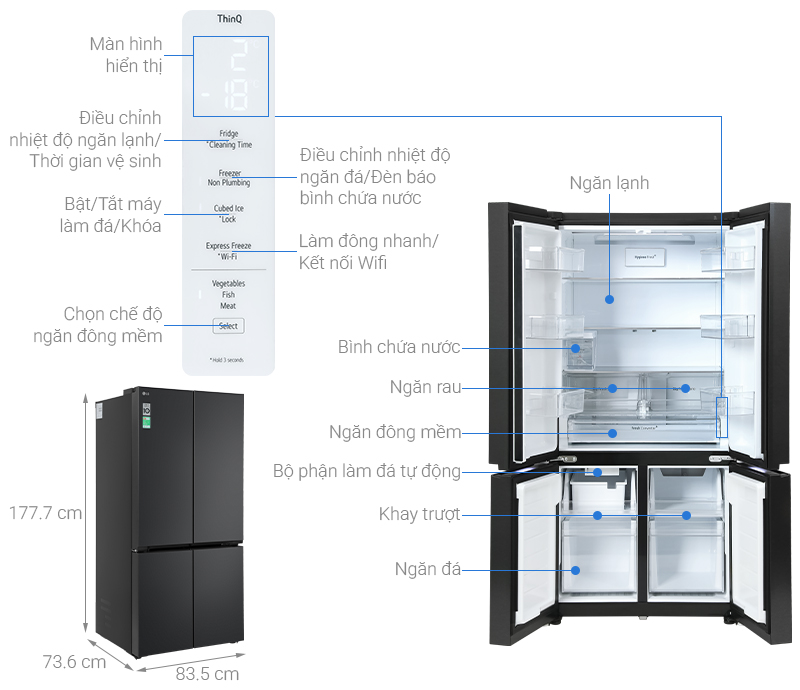 Tủ lạnh LG Inverter 575 lít Multi Door LFB58BLMA là lựa chọn lý tưởng cho gia đình đông người nhờ dung tích sử dụng lớn, thiết kế 4 cửa hiện đại cùng loạt công nghệ tiên tiến như DoorCooling+ làm lạnh từ cánh, LINEARCooling duy trì nhiệt độ ổn định và bộ lọc Hygiene Fresh+ khử mùi, kháng khuẩn hiệu quả. Tích hợp thêm các tiện ích cao cấp như lấy nước bên ngoài, điều khiển qua ứng dụng LG ThinQ và làm đá tự động, sản phẩm mang đến trải nghiệm tiện nghi cho người dùng hiện đại.