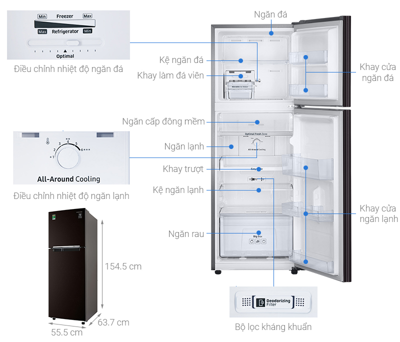 Dung tích tủ lạnh Samsung 236 lít phù hợp với những gia đình nhỏ, đáp ứng được nhu cầu sử dụng của 2 – 3 thành viên.